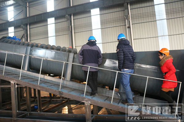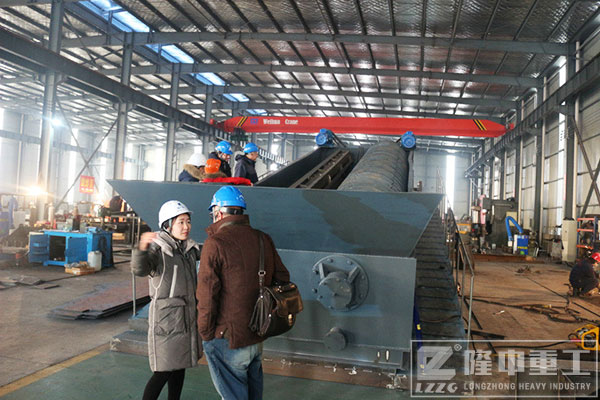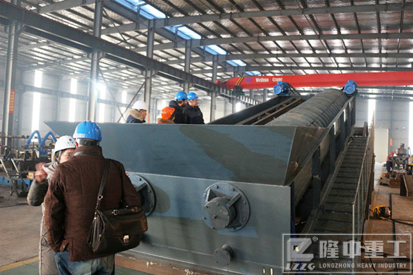 上圖:客戶(hù)在外貿部同事的陪同下對雙螺旋洗沙機進(jìn)行參觀(guān)。